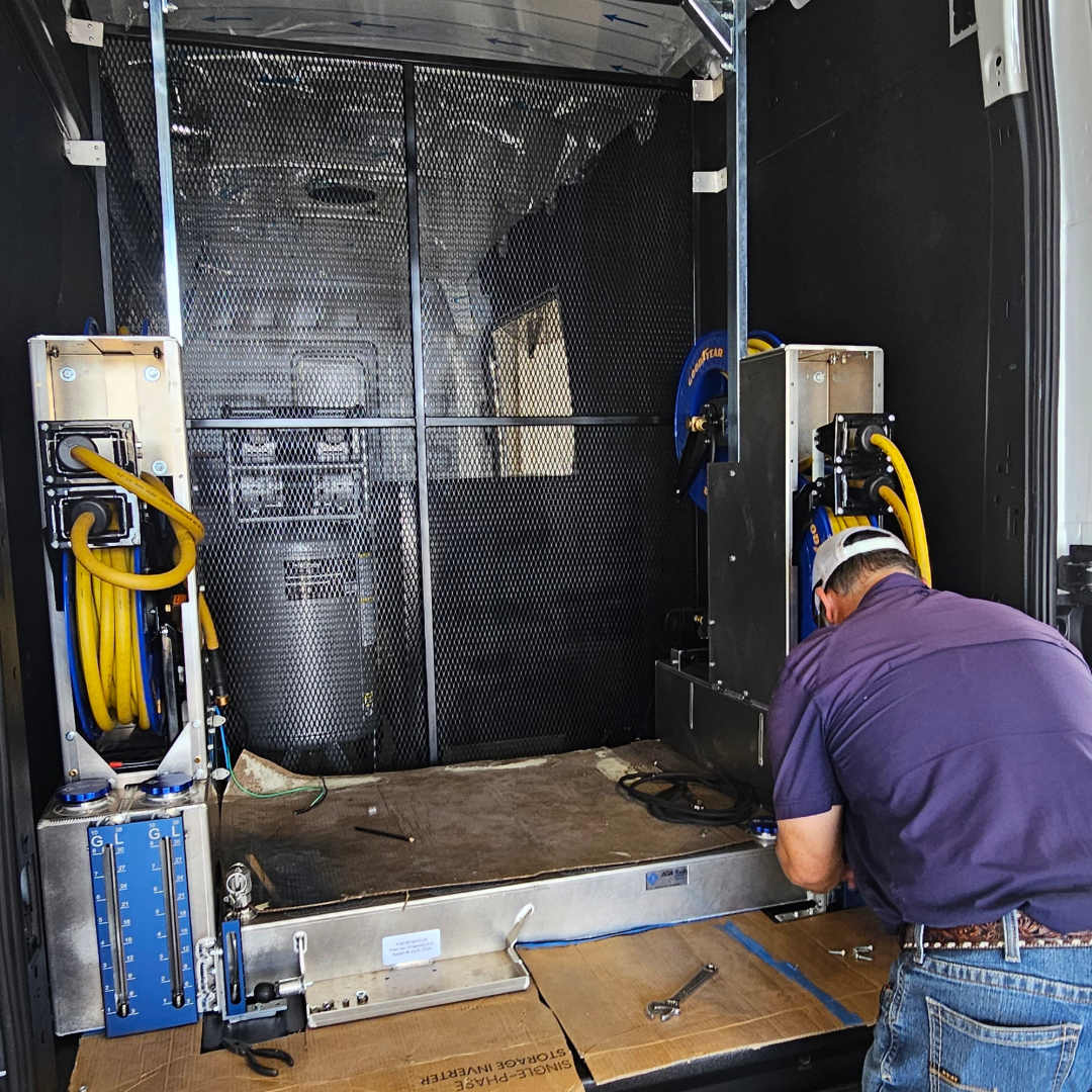 With an AGA-equipped van, essential tools and advanced oil systems are organized for quick access, letting technicians complete maintenance in minutes. Designed for performance and mobility, this setup brings professional service directly to customers wherever they are.