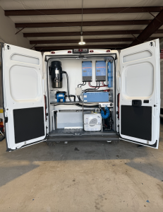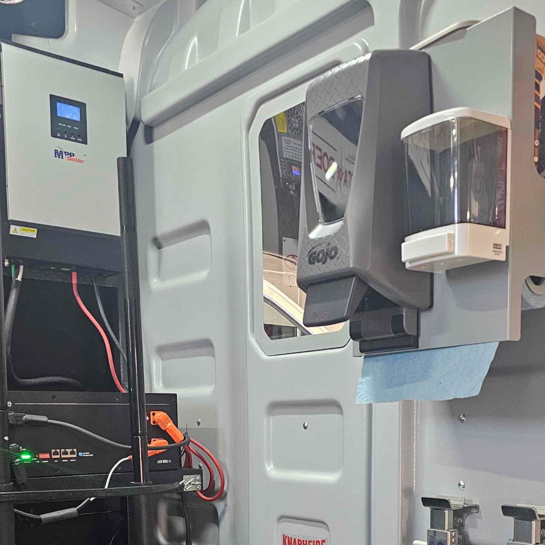 The simple, intuitive controls make the vehicle effortless to operate from inside the salon, ensuring a smooth and stress-free environment for both groomers and pets. Our Curbside Upfitters advanced battery system provides reliable, uninterrupted power in any location while remaining eco-friendly and cost-effective by eliminating harmful emissions. With a dual-alternator setup, driving to your next appointment charges your batteries on the go, offering peace of mind and boosting your return on investment (ROI).