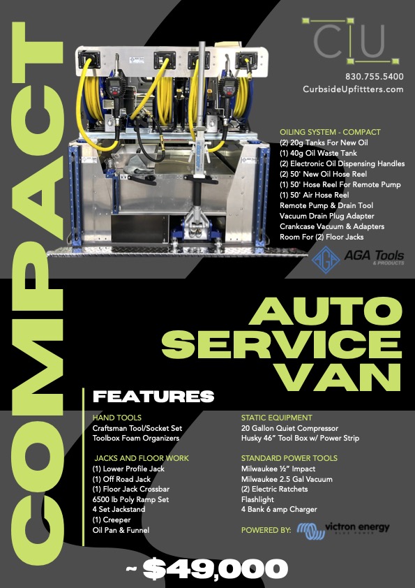 We are proud to offer a custom-built service van package designed to help dealerships and service centers stay ahead of the convenience economy. This turn-key upfit is optimized for mobile oil changes, basic maintenance, and customer retention.
